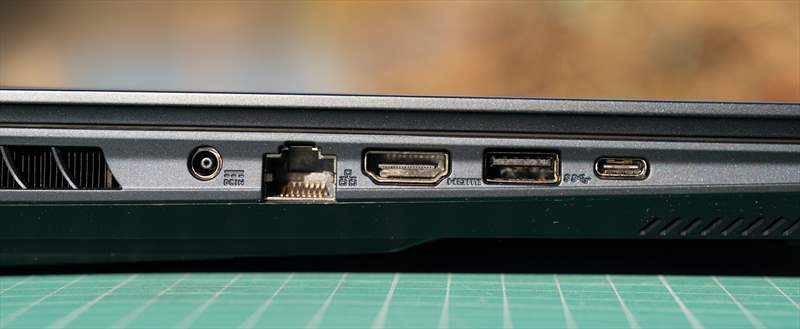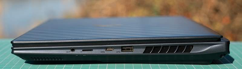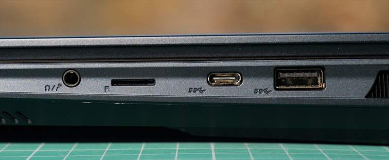 Cam așa se prezintă conectivitatea pe ambele laterale. Exista port fizic de rețea, dar si HDMI cu USB A si C + Thunderbolt – Jack si cititor de microSD.