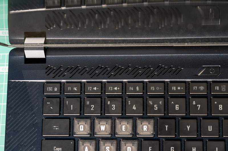 Design-ul lui Aorus Master 16 este predominant format din suprafețe glossy si unghiulare. Tastatura are o iluminare RGB plăcută si 7 taste translucide pentru un aspect aparte. Design-ul este complex si complicat pentru un laptop, dar la final de zi totul tine de gust. Cert este ca design-ul agresiv a rămas la schema de culori care s-a mai domolit fata de laptopurile de gaming ale anilor trecuți.