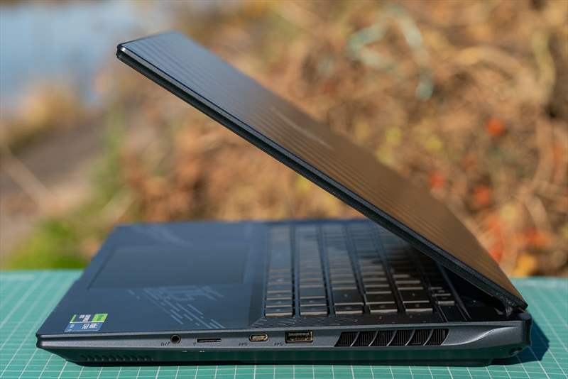 - Pe partea de autonomie, in configuratia de fata poti obtine 1.5 si 4 ore de autonomie datorită bateriei de 99 Wh. Cifrele de autonomie țin de scenariul de utilizare. Nu este un laptop pentru autonomie, ci unul pentru editare si jocuri. Va sta mult conectat la priza, deci bateria este de multe ori un consumabil care va ”muri” prematur. Pentru editare foto am obtinut cam 1 ora si 45 minute de editare in Lightroom Desktop, iar la o sesiune de Doom Eternal pe baterie tine lejer 60 de minute. Este normal sa tina atat la inceput cand este noua, dar aceste cifre sunt in scadere pe masura ce bateria se uzeaza. Nu cumperi laptopuri cu GPU dedicat pentru autonomie, cel putin nu inca.