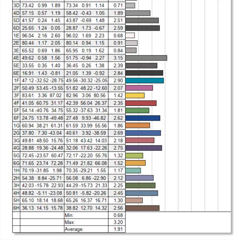 Valorile deltaE medii sunt de 1.91, iar maximul este 3.2 si la final de zi rămâne un panou bun pentru jocuri si productivitate.