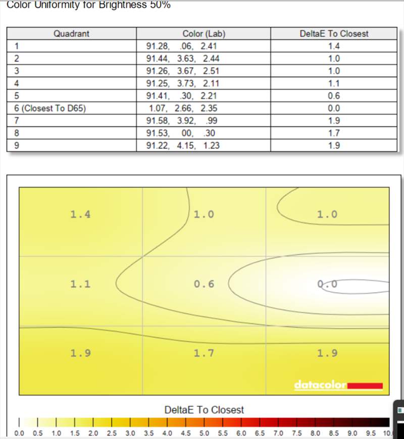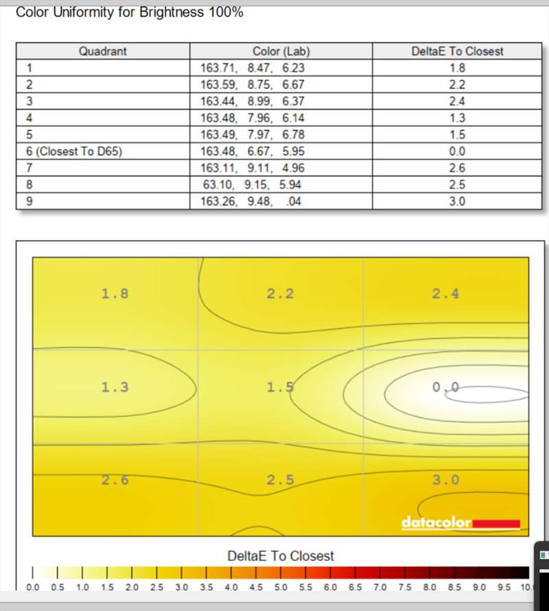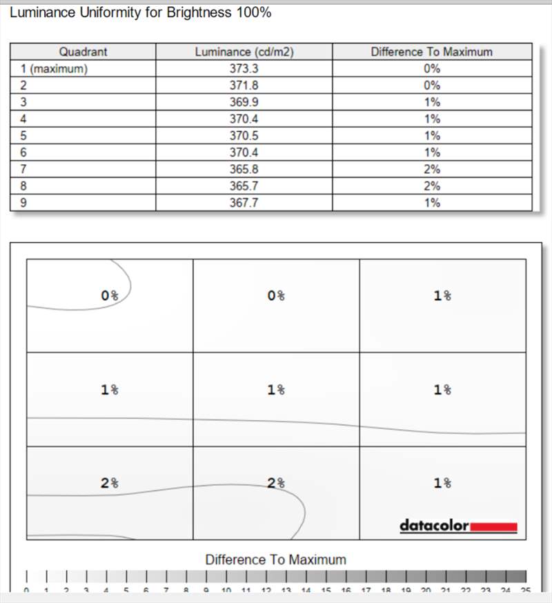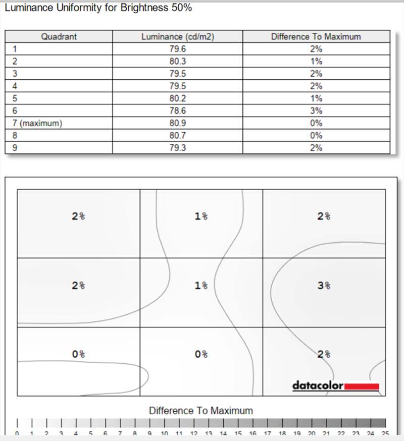 Uniformitatea este si ea buna spre foarte buna. Valorile de uniformitate ale culorii sunt mai mari la 100% luminozitate.