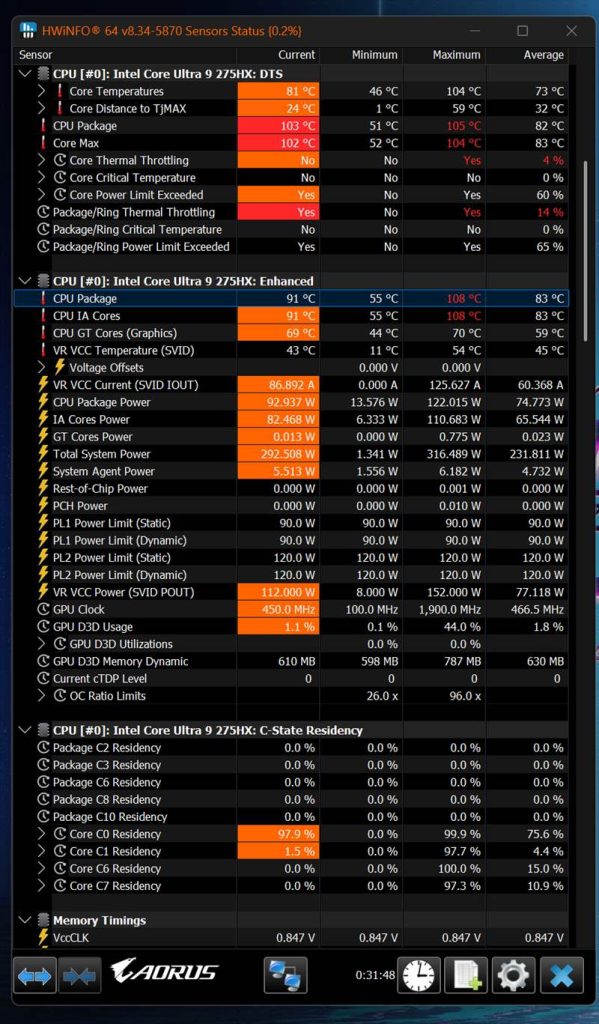 Aorus Master 16 este un laptop puternic datorită lui Intel Ultra 275HX + RTX 5080 Mobile, cei 32 GB DDR5 ajuta si la fel si SSD-ul. Prezenta conectivitatii Thunderbolt 5 il face primul laptop testat in perioada asta cu acest standard. Acest combo de hardware este performant de la productivitate pana la jocuri. Ecranul OLED are performante bune, timp de raspuns rapid si mulți Hz pentru experiente fluide in joc si timeline. Iluminarea RGB a tastaturii este plăcută si cursa de 1.7 mm ajuta sa te conectezi la acțiunea pe care o faci pe monitor. Design-ul si constructia lui Aorus Master 16 sunt premium si face o concurenta buna pentru Asus ROG Strix / Acer Triton fără probleme. Upgradabilitatea este si ea prezenta, exact cât te-ai aștepta. Totusi in perioada asta când SSD si RAM sunt scumpe, varianta testată costa cam ~13500 lei. Raportul preț/performanța pentru SSD + Memoria RAM si un RTX 5080 Mobile + Ecran OLED rapid si ce mai ofera este bun. Oricum scumpirile de componente sunt si ele iminente.