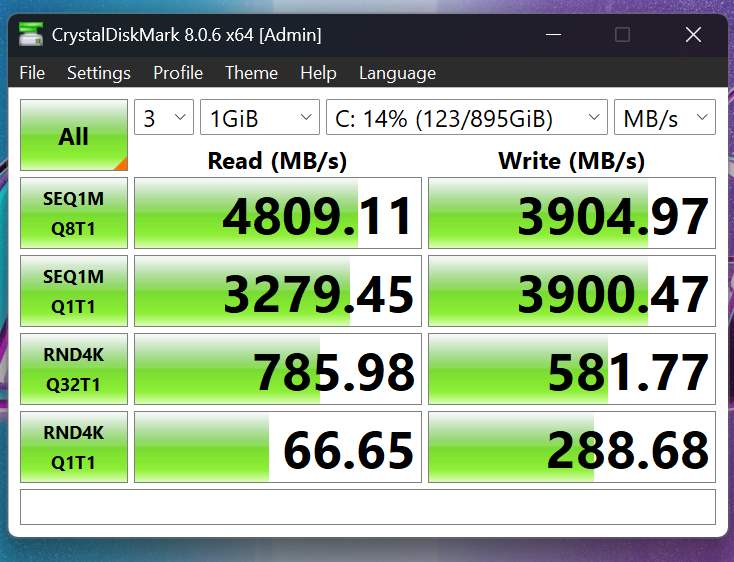 - Stocarea se face pe un SSD M.2 PCIe 4.0 de 1 TB si iata ce performante ofera: