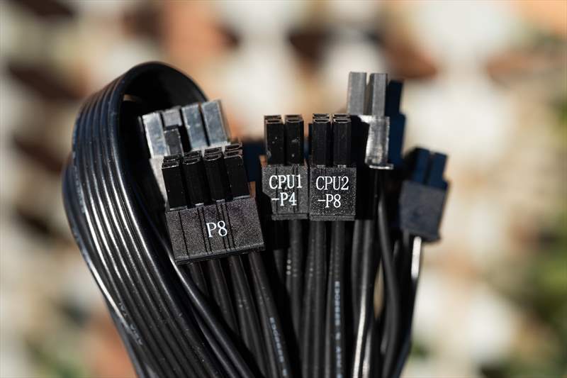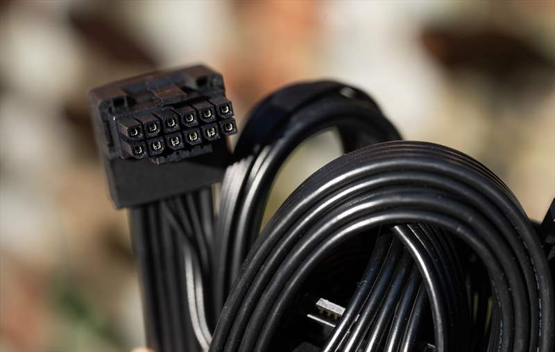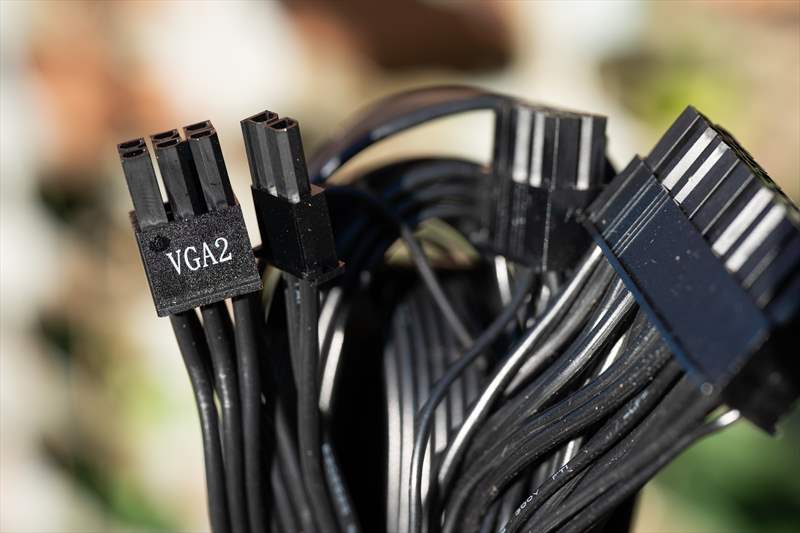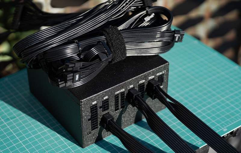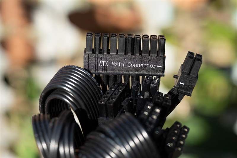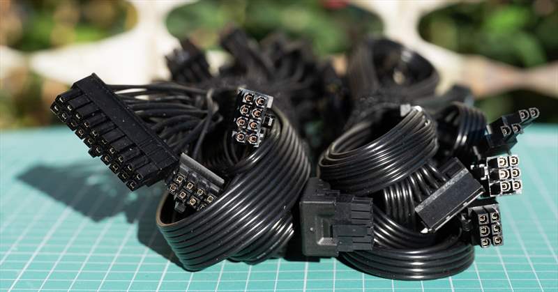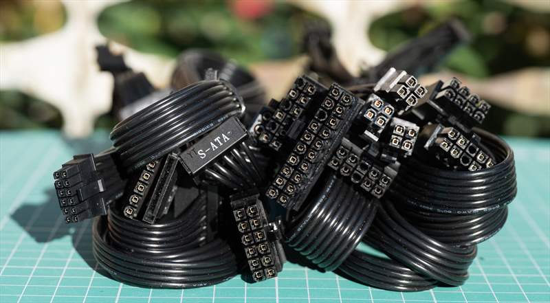 Cam așa se prezintă cablurile sursei, sunt izolate individual. Datorită dimensiunilor plate, cu acestea poți face un wire-management cât mai compact.