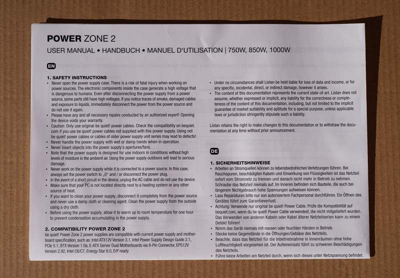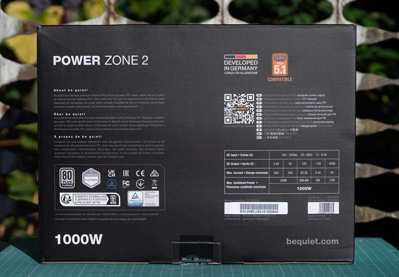 Cam așa se prezintă cutia sursei Power Zone 2 de 1000W. Design-ul specific BeQuiet cu câteva specificații pe spate.