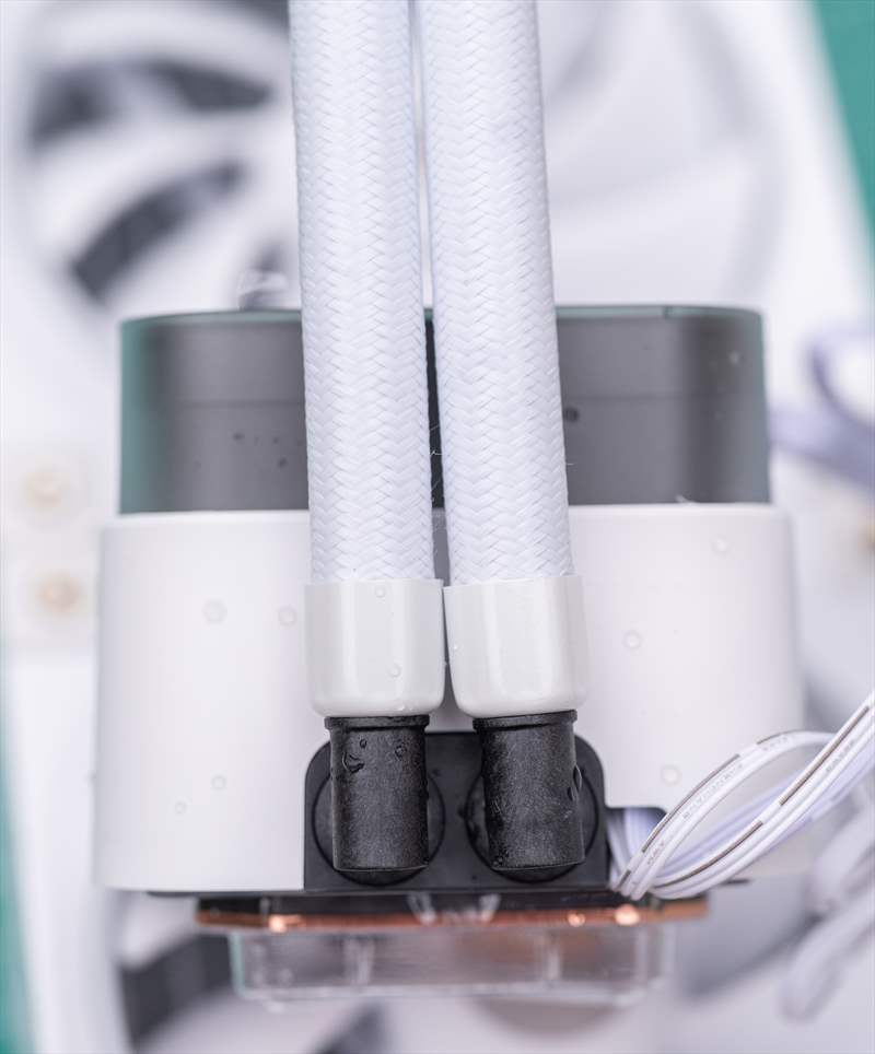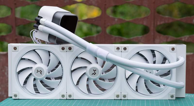 Pe partea de constructie, DeepCool LQ360 este o unitate solida, greutatea sa de 1840 grame isi spune cuvantul prin materiale de calitate. Incepem cu waterblock-ul care are o suprafata de contact din cupru inconjurat de o carcasa din plastic si ecranul glossy in partea de sus. Acesta se prinde magnetic si poate fi rotit in functie de preferinta. Se simte solid construit si asamblat. Ne mutam cu tuburile acoperite cu nailon, flexibilitatea este medie, dar se simt ca doua bucati de cauciuc de calitate sub nailonul alb. Radiatorul are o grosime standard de 27 mm si ventilatoarele au o grosime de 25 mm. Per total, asamblarea este buna si constructia peste medie pentru gama asta de pret. DeepCool LQ360 arata bine estetic pe alb si se vede clar atentia la detalii si design-ul orientat catre estetic. Acum haideti sa vedem performantele de sub ”capota”.