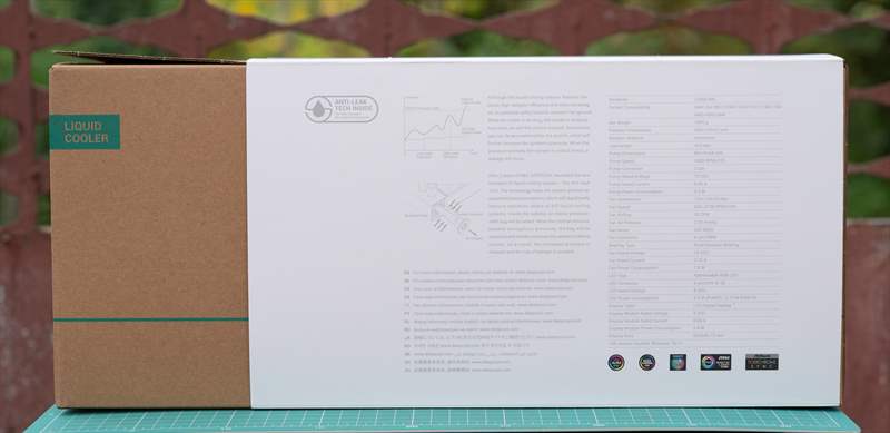 Cutia lui DeepCool LQ360 si specificatiile de pe spate.