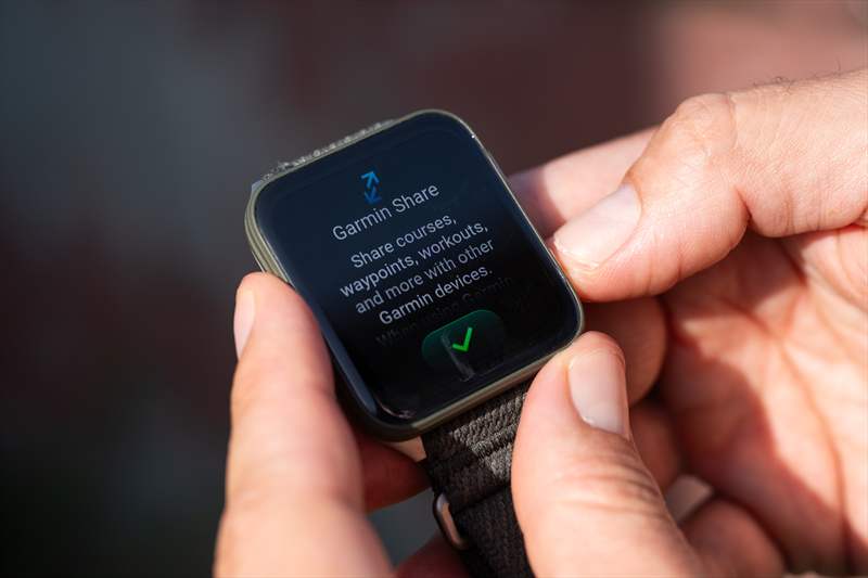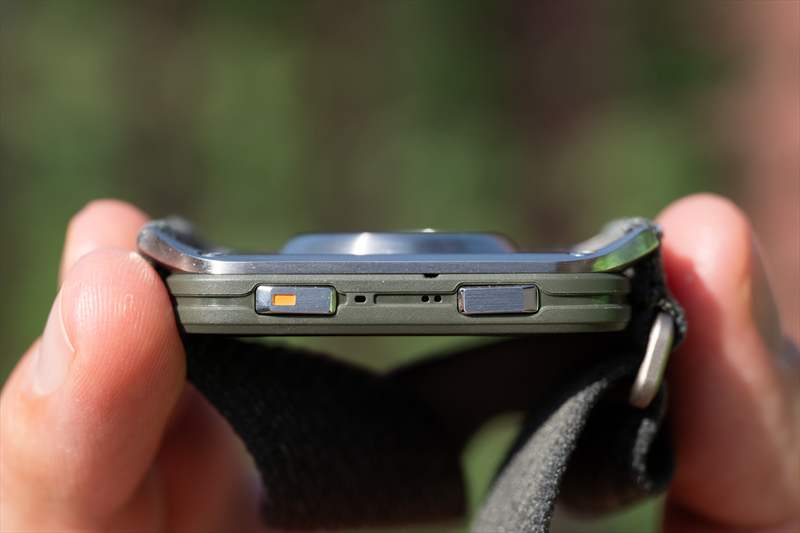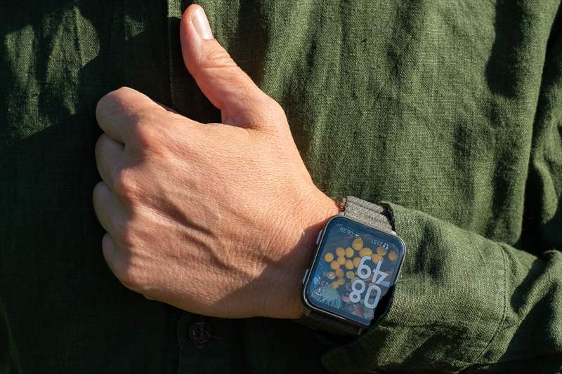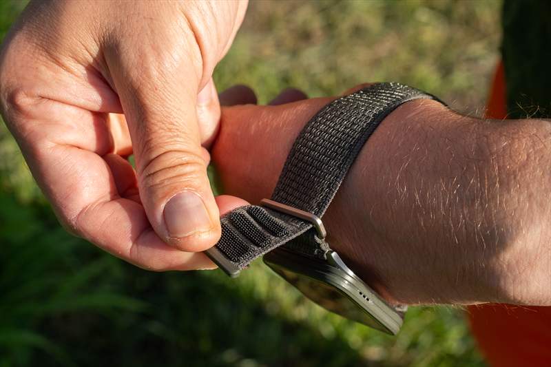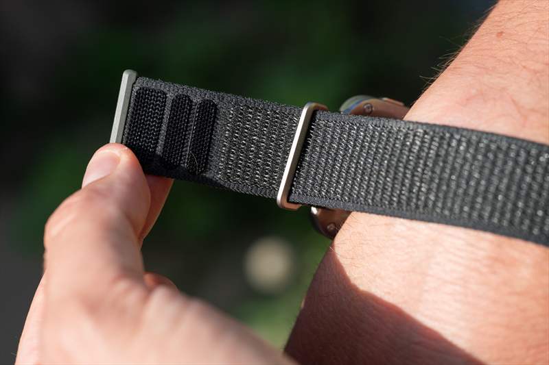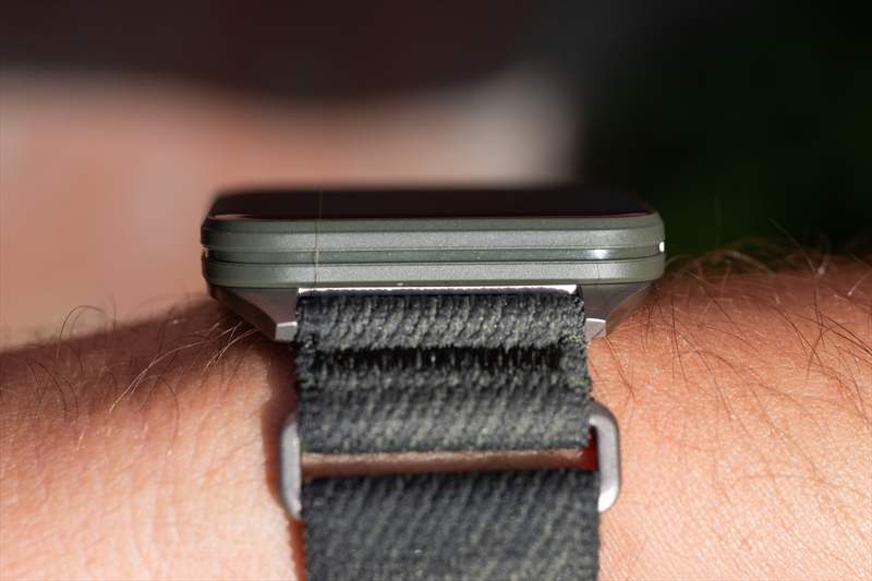 Noul Garmin Venu X1 vine cu o curea textila pe exterior si cu interior UltraFit. Se numesc ComfortFit noile curele si pentru Venu X1 sunt disponibile doua culori ( verdele din imagini si negru – ambele au 24 mm lățime ). Aceste curele au venit recent si pentru Venu 4 ( 18 mm, dar si in 22 mm ).