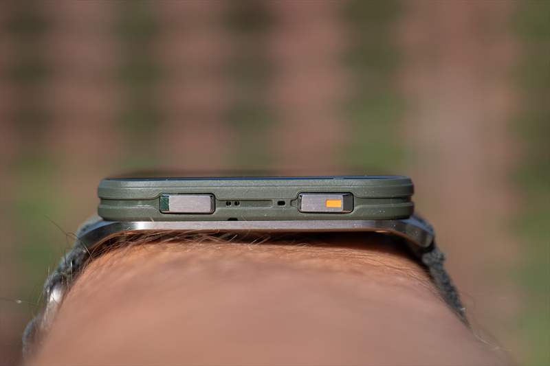 Iată spatele din titan care arată excelent, senzorul Elevate Gen 5 si portul de încărcare.