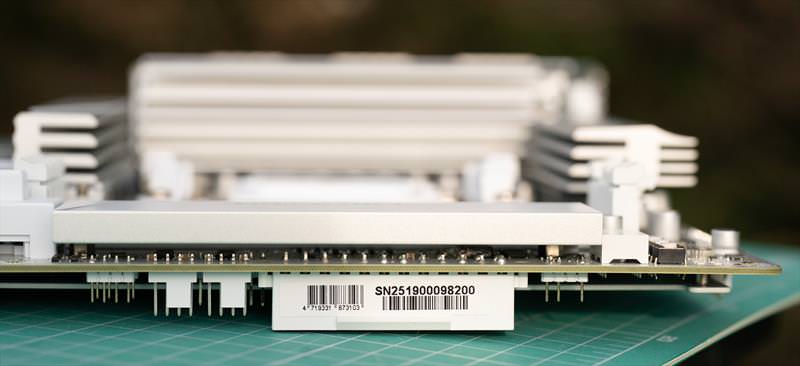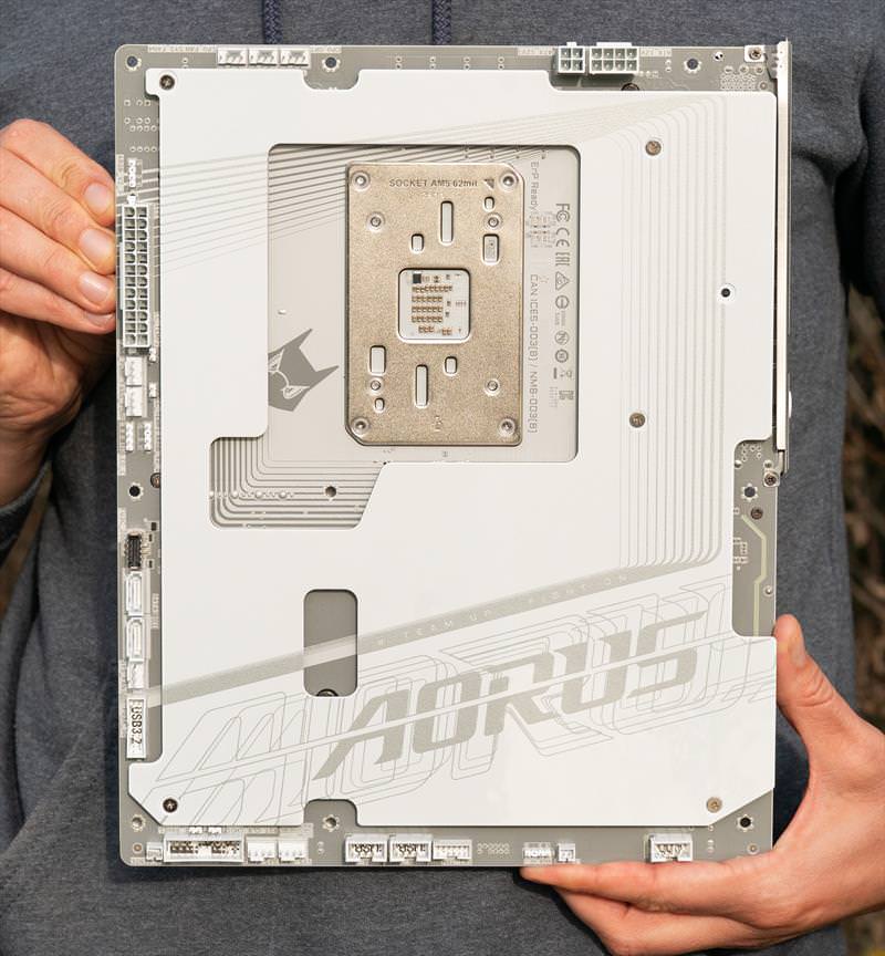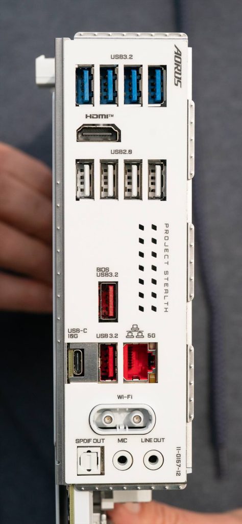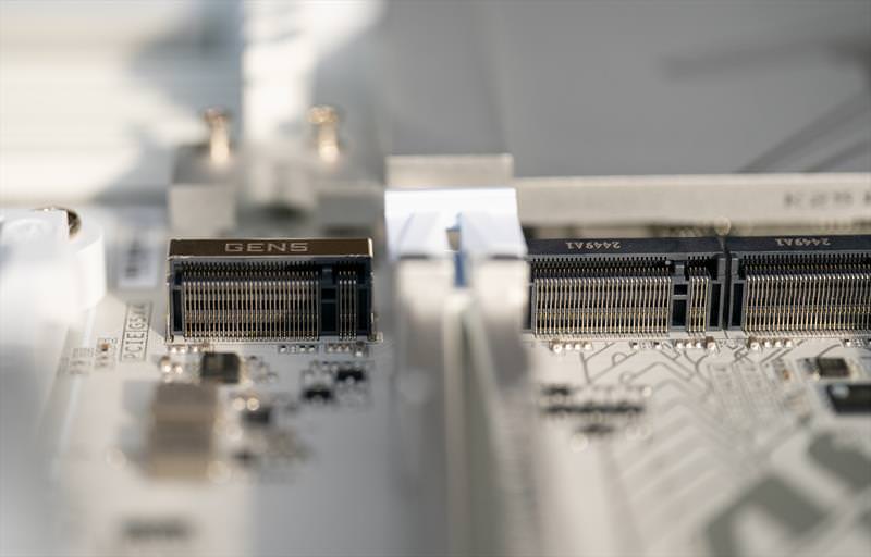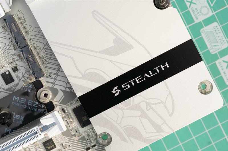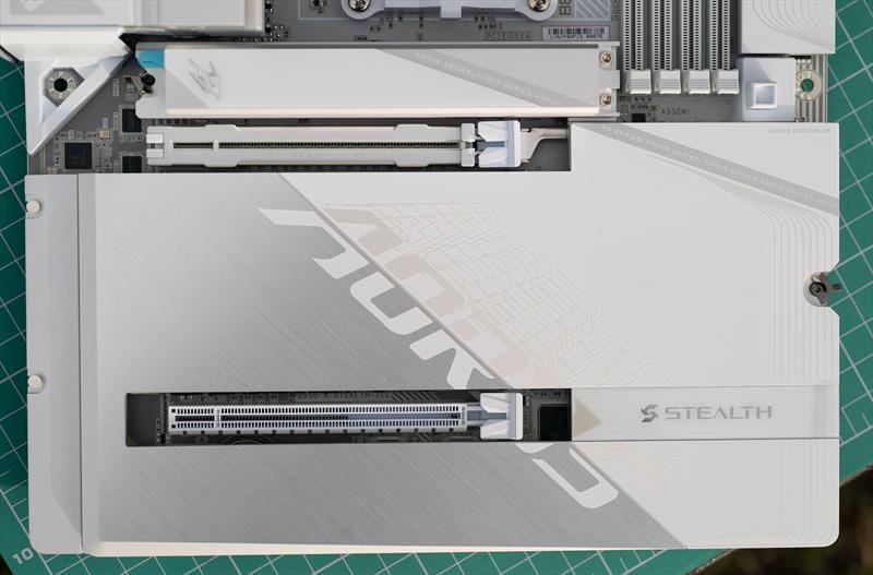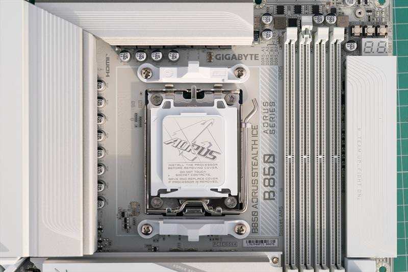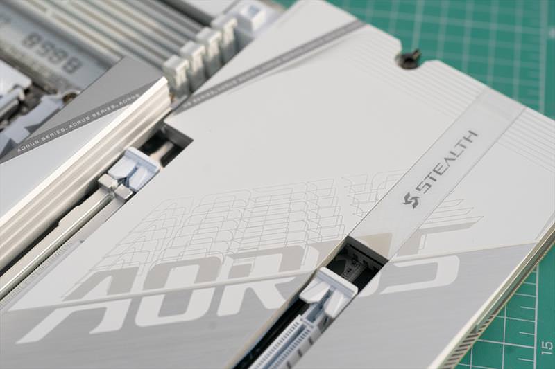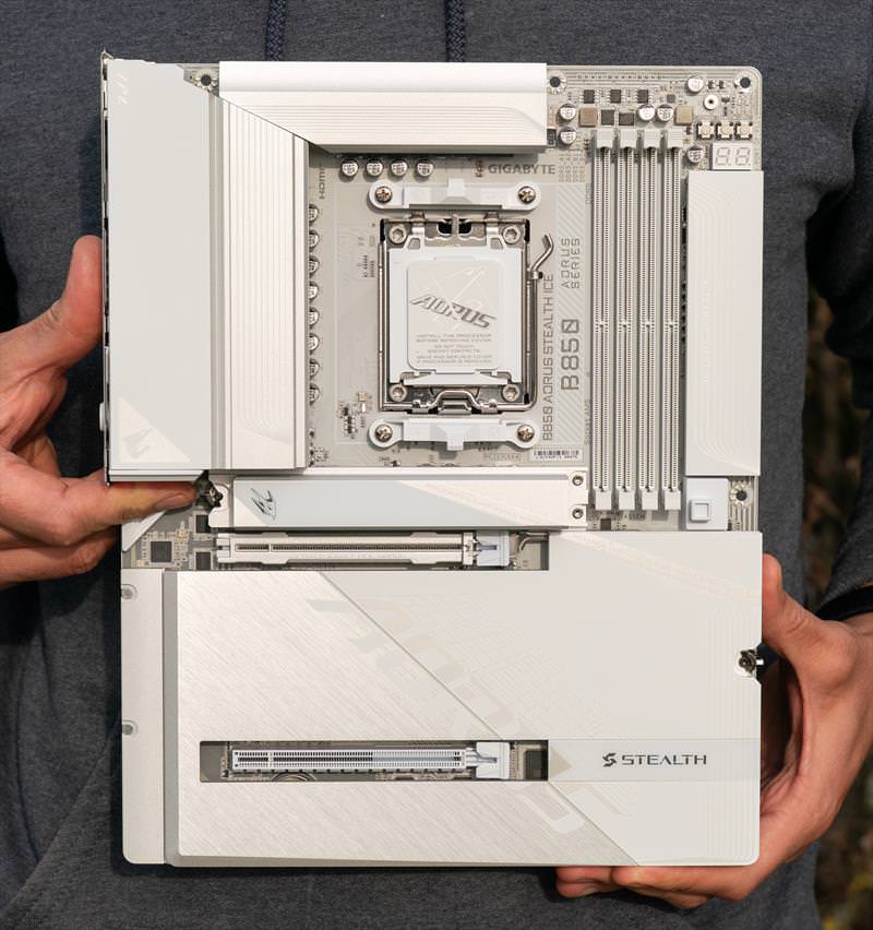 B850 Aorus Stealth ICE arata excelent din fata. Un design cu adevarat reusit.