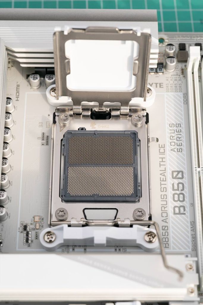 B850 AORUS STEALTH ICE este o placa de baza cu conectori ascunsi si cu socket AM5. Am vazut-o prima data la Computex 2025 si acum se pare ca a sosit si pe mainile noastre. Chipsetul B850 reprezinta echilibrul cand vine vorba de costuri pentru a face un Desktop PC in 2025 alaturi de un Ryzen 7800X3D/9800X3D/9900X3D. Aceasta placa de baza vine cu mod X3D care mai stoarce ceva performante din aceste cip-uri. Cei de la Gigabyte s-au gandit bine sa scoata un B850 pe alb cu conectori in spate. ICE inseamna design alb imaculat si Stealth inseamna conectori in spate. Totul pentru un build curat si imaculat. Avantajul componentelor Stealth ICE fata de concurenta reprezinta pretul care este ceva mai accesibil fara a face vreun compormis la calitatea componentelor.
