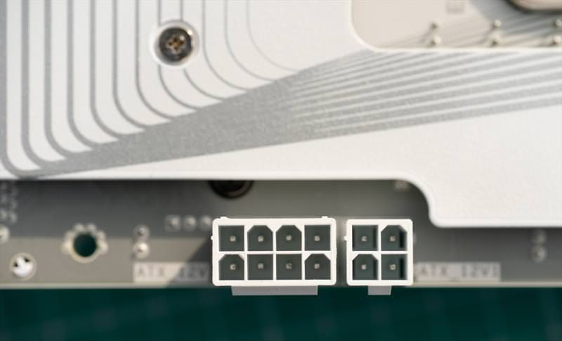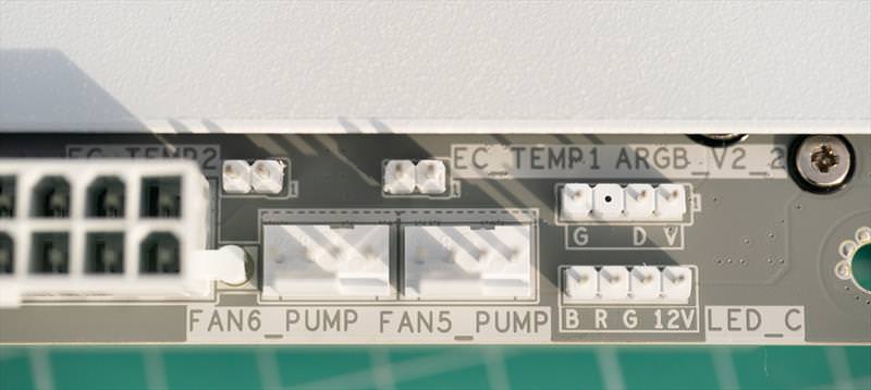 Alimentarea procesorului se face cu 3 x 4 Pin si pe langa mai avem 3 headere de ventilator. Alimentarea placii de baza si un header RGB.