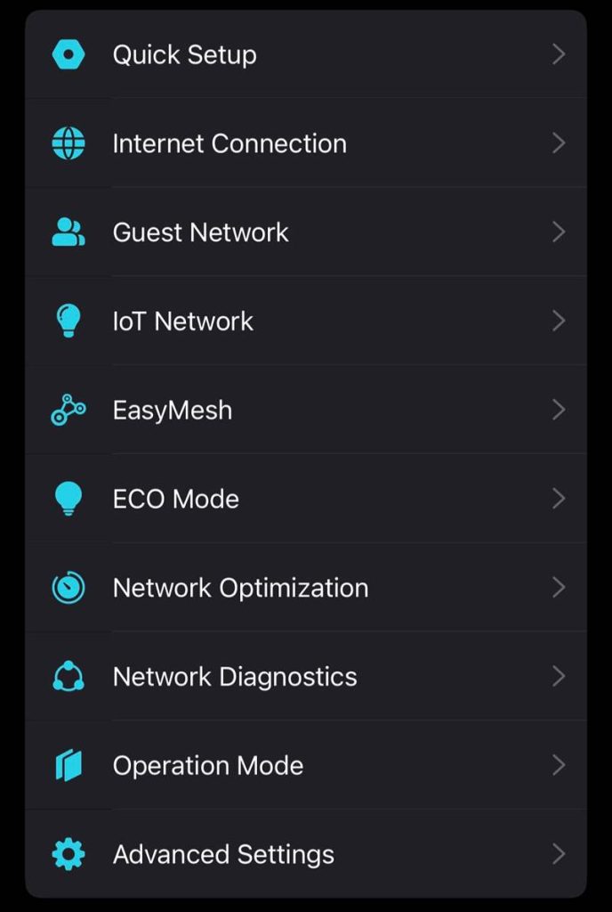 Prin meniuri găsim: upgrade de firmware, configurările cu clienți VPN, setările routerului, easymesh, centrul HomeShield si tot ce înseamnă opțiuni extra.