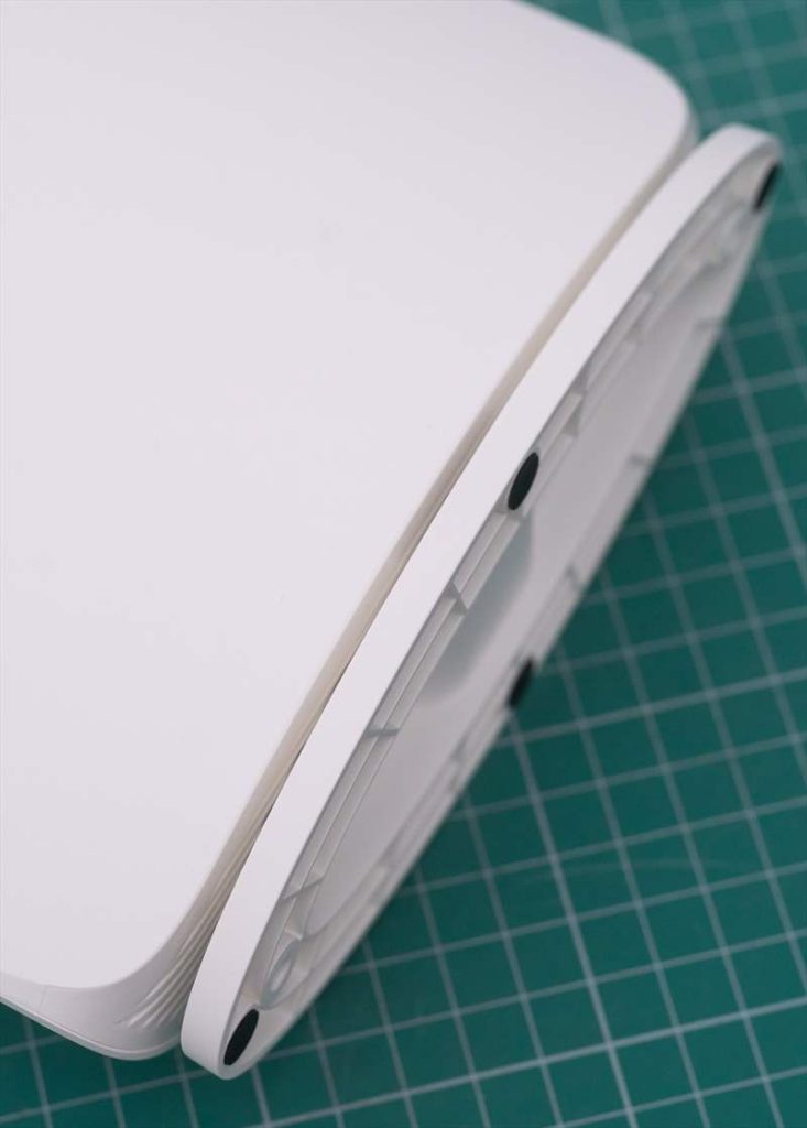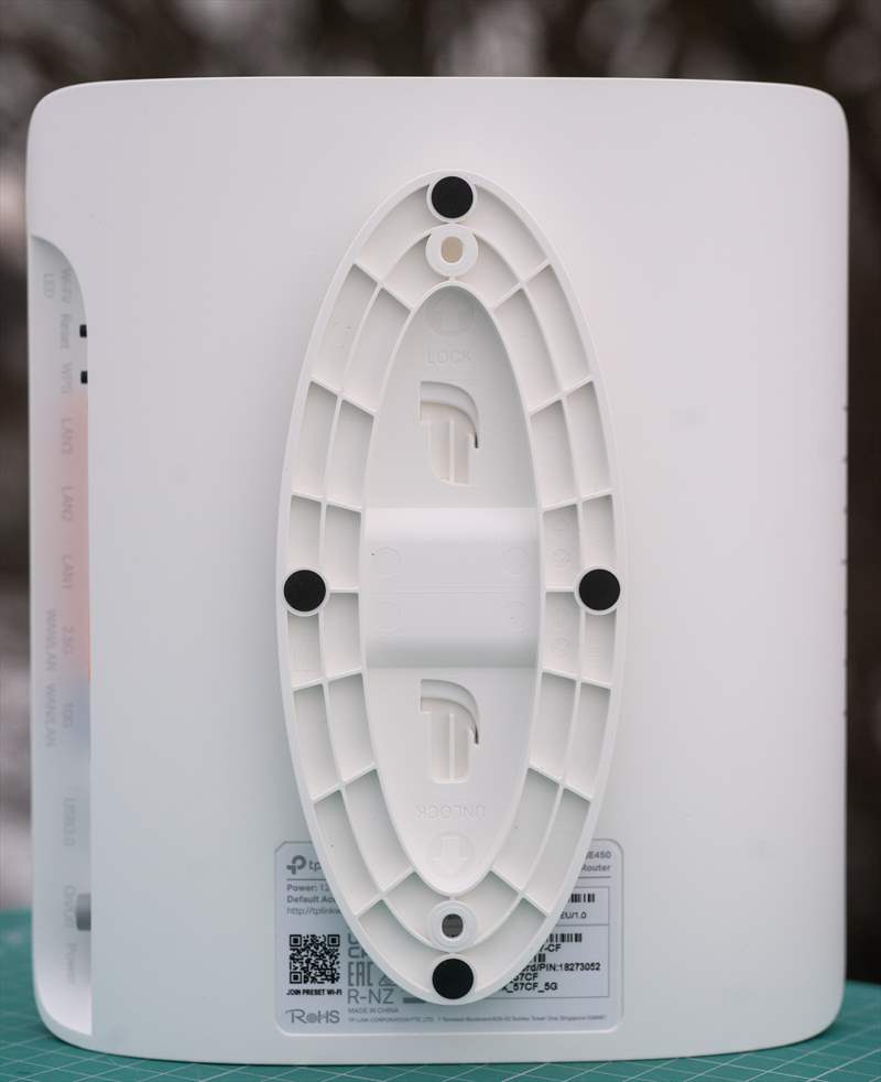 TP-Link Archer BE450 este un router realizat din plastic, are pana în 700 grame greutate si pare solid construit. Antenele interne nu se vad, dar la o privire atenta ele sigur se afla in carcasa laterală spre partea de sus a routerului. Pe baza si in partea de sus Archer BE450 are decupaje pentru o circulare a aerului cald. Piciorul de atașare pe lateral/baza este din plastic si are o prindere ferma de carcasa router-ului. Design-ul este simplu, modern si rotunjit. Numai bun cât sa se potrivească pe lângă corpuri de mobila albe sau sa iasă in evidență pe lângă mobila gri sau neagră. Mi-ar fi plăcut sa existe o varianta de culoare pe negru, măcar pentru o alegere si pe baza stilului de mobila. TP-Link Archer BE450 este un router arătos si pregatit sa îți arate de ce performante este capabil.